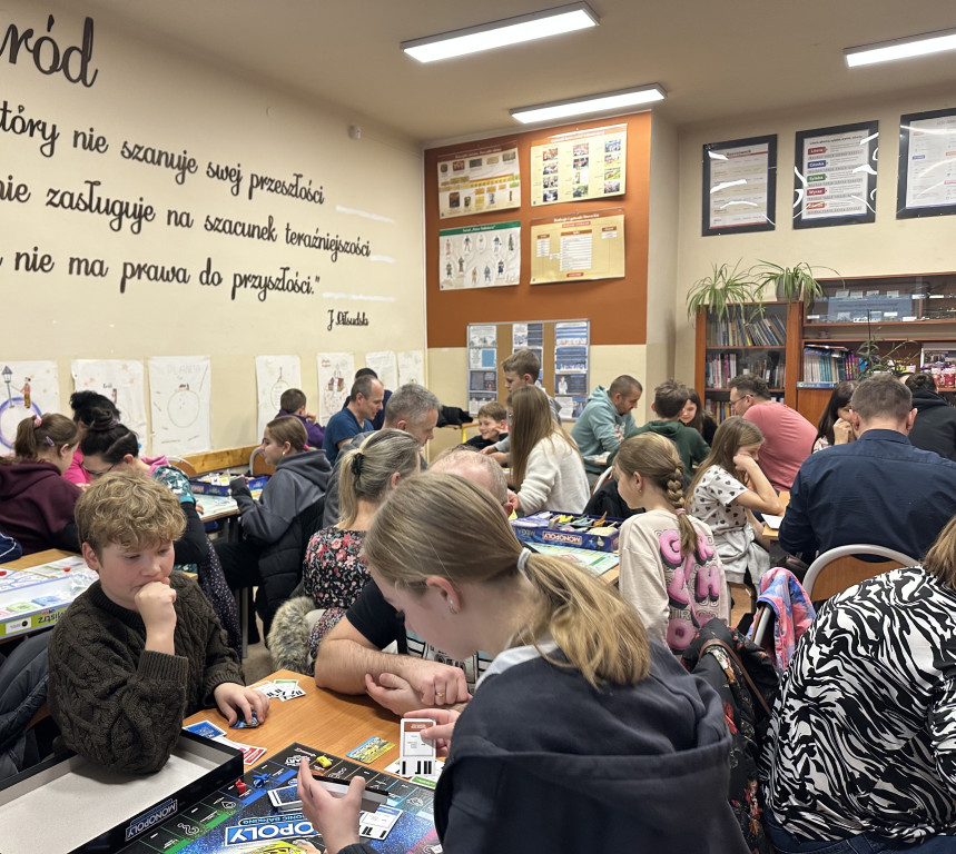 Wspólne rozgrywki sprzyjały nie tylko świetnej zabawie, ale także uczyły współpracy, planowania strategii oraz rozwijały umiejętność przewidywania następstw podejmowanych decyzji. Spotkanie okazało się doskonałą okazją do umocnienia współpracy między szkołą, uczniami i rodzicami. Wspólnie spędzony czas pokazał, że matematyka może łączyć pokolenia i inspirować do dalszych działań.
