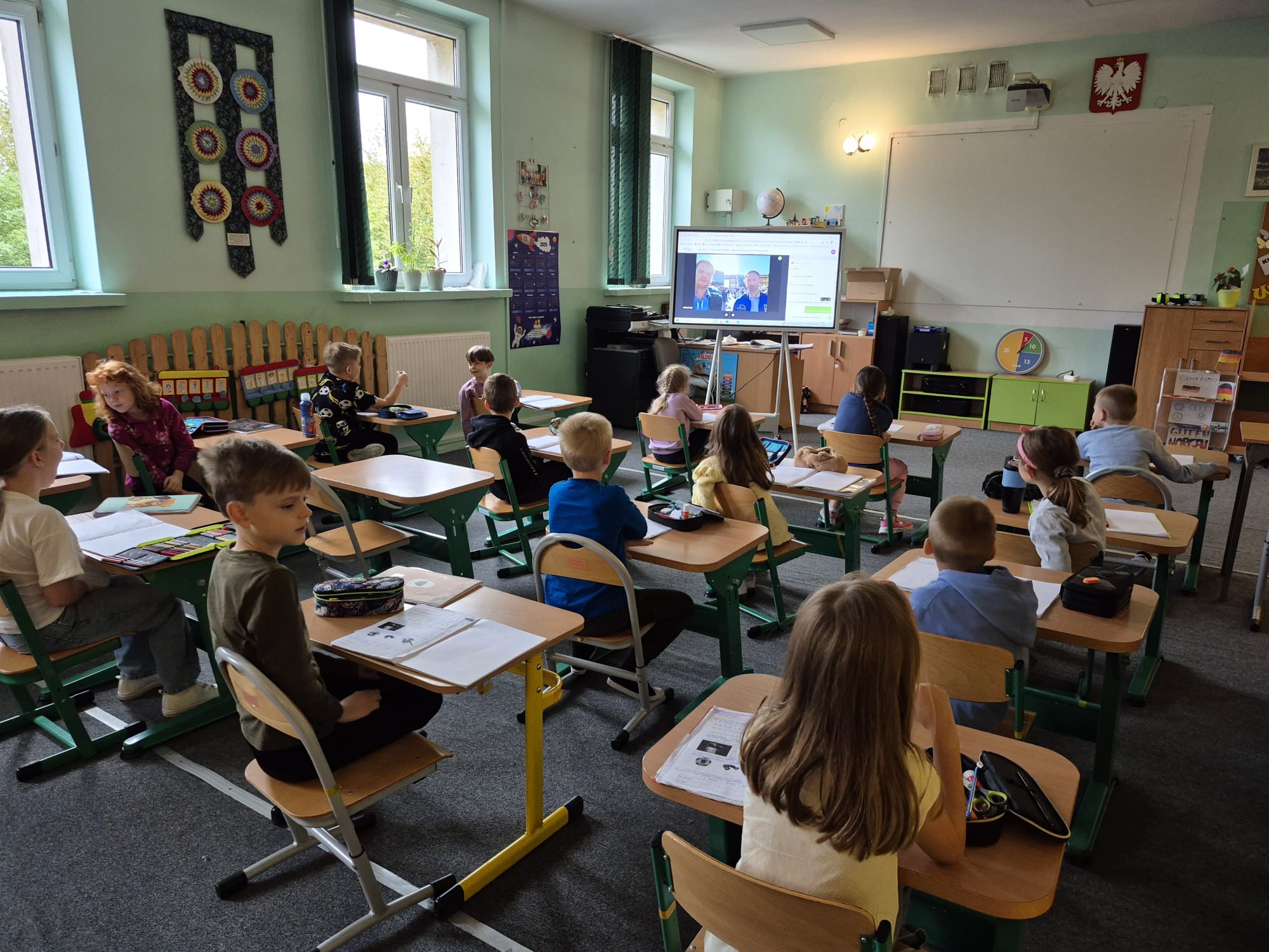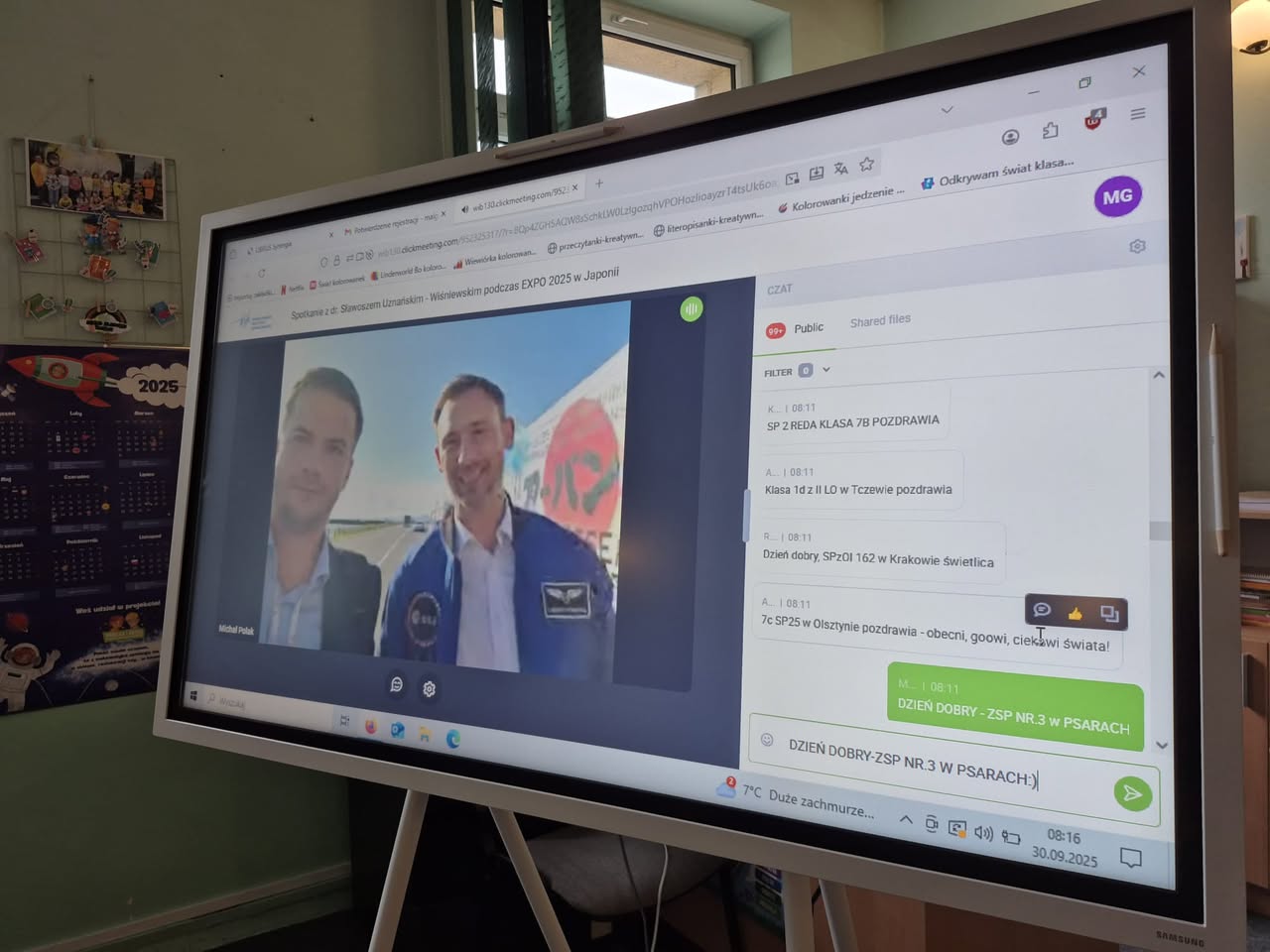30 września uczniowie klasy 2 mieli niezwykłą okazję uczestniczyć w wyjątkowej lekcji online transmitowanej z Polskiego Pawilonu na Expo 2025 w Osace. Spotkanie było skierowane do uczniów szkół podstawowych i ponadpodstawowych z całej Polski. Gościem specjalnym wydarzenia był dr Sławosz Uznański-Wiśniewski – polski astronauta, który podzielił się swoją wiedzą i doświadczeniem z najmłodszymi. Podczas lekcji dzieci: