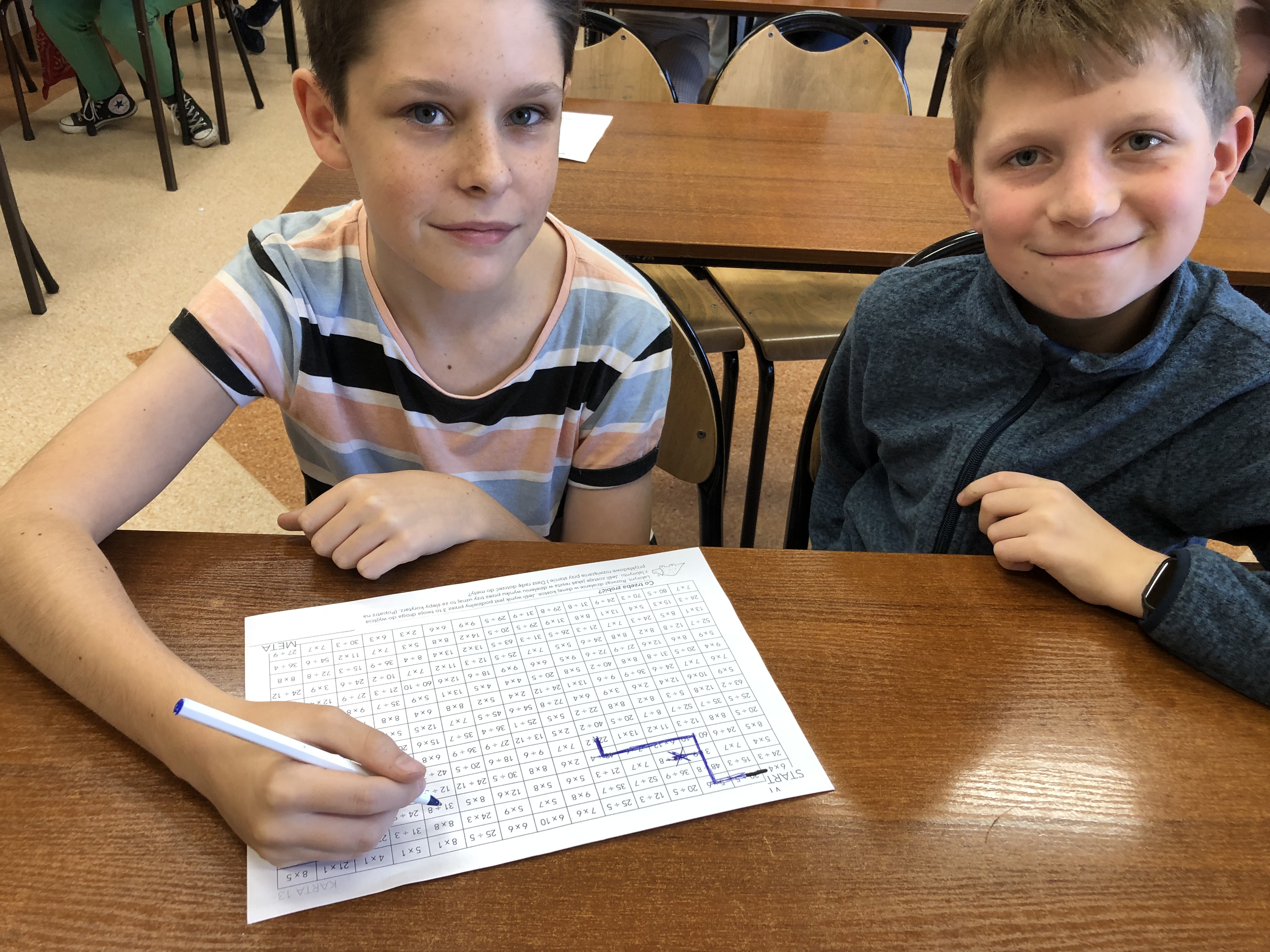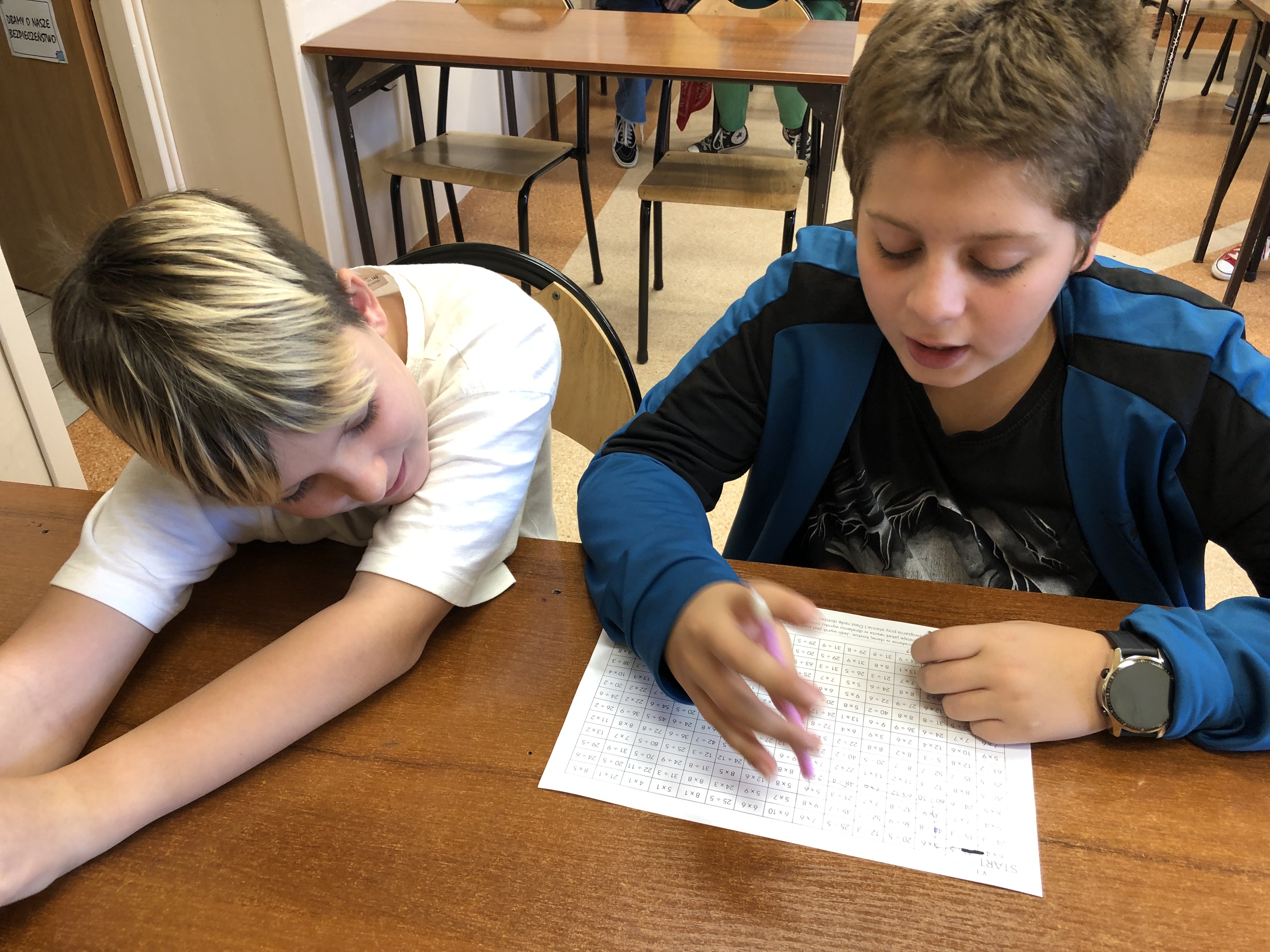 Tabliczce mnozenia poświęcone było również czwartkowe spotkanie z matematyką. Uczniowie zmierzyli się z działaniami, których poprawny wynik pozwolił im na pokonanie labiryntu.