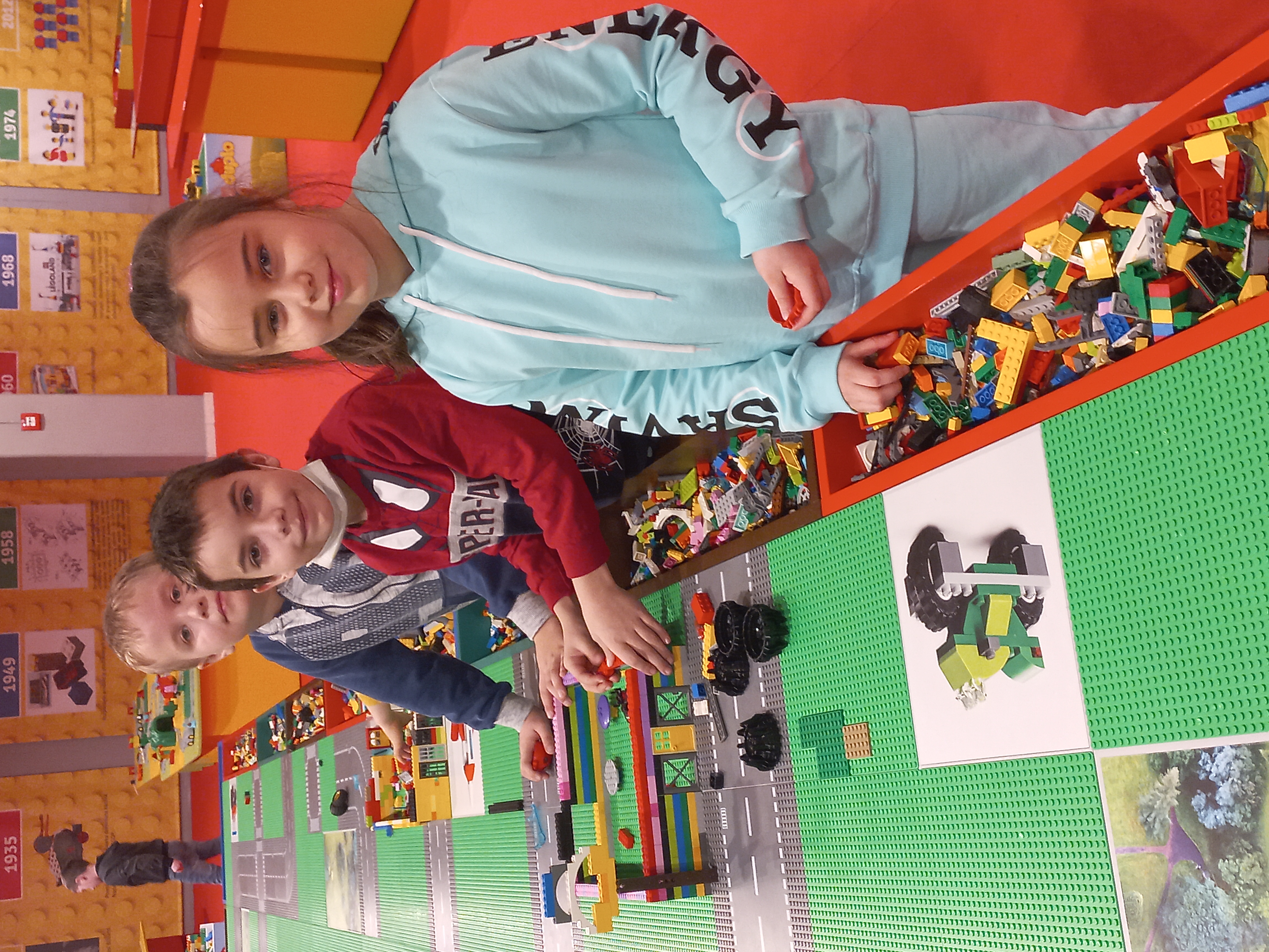 Po obejrzeniu ekspozycji dzieci spędziły, wesoło i kreatywnie czas w strefie zabaw klockami Lego. Uczniowie mieli okazję rozbudzić swoją wyobraźnię i pomysłowość, ćwiczyli umiejętności manualne i integrowali się z innymi uczestnikami zabawy. Klocki, z których można zbudować prawie wszystko i które nie posiadają ograniczeń wiekowych, zaangażowały uczniów na dobre. Każdy znalazł tam coś odpowiedniego dla siebie. A można było „pisać” klockami na specjalnej ścianie- BRICK WALL i malować, budować, tworzyć.
