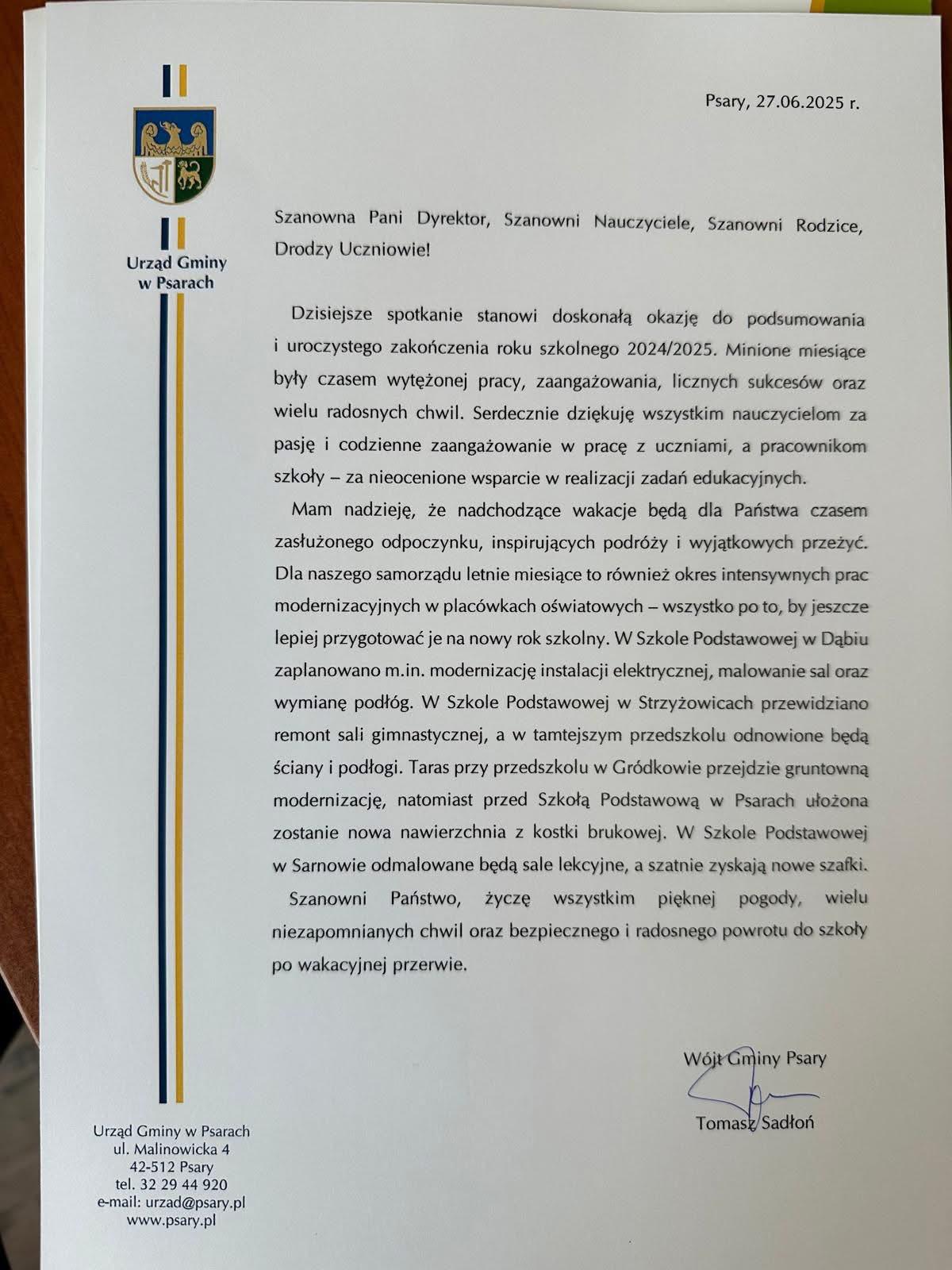 Drodzy Uczniowie i Rodzice! Serdecznie zapraszamy na uroczyste rozpoczęcie roku szkolnego w poniedziałek, 1 września 2025r. o godz. 9.00. Uroczyste rozpoczęcie odbędzie się w sali gimnastycznej, a następnie spotkanie z wychowawcami w klasach, w trakcie którego zostaną rozdane podręczniki szkolne.